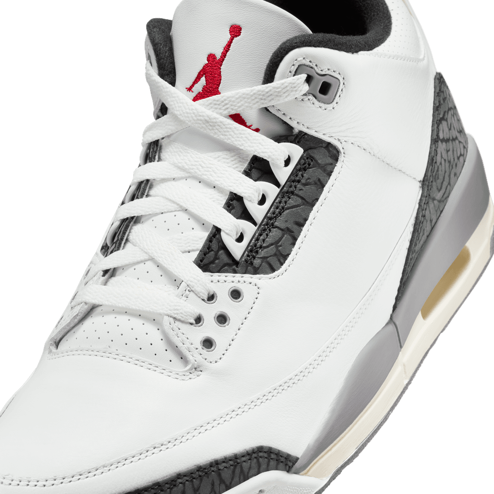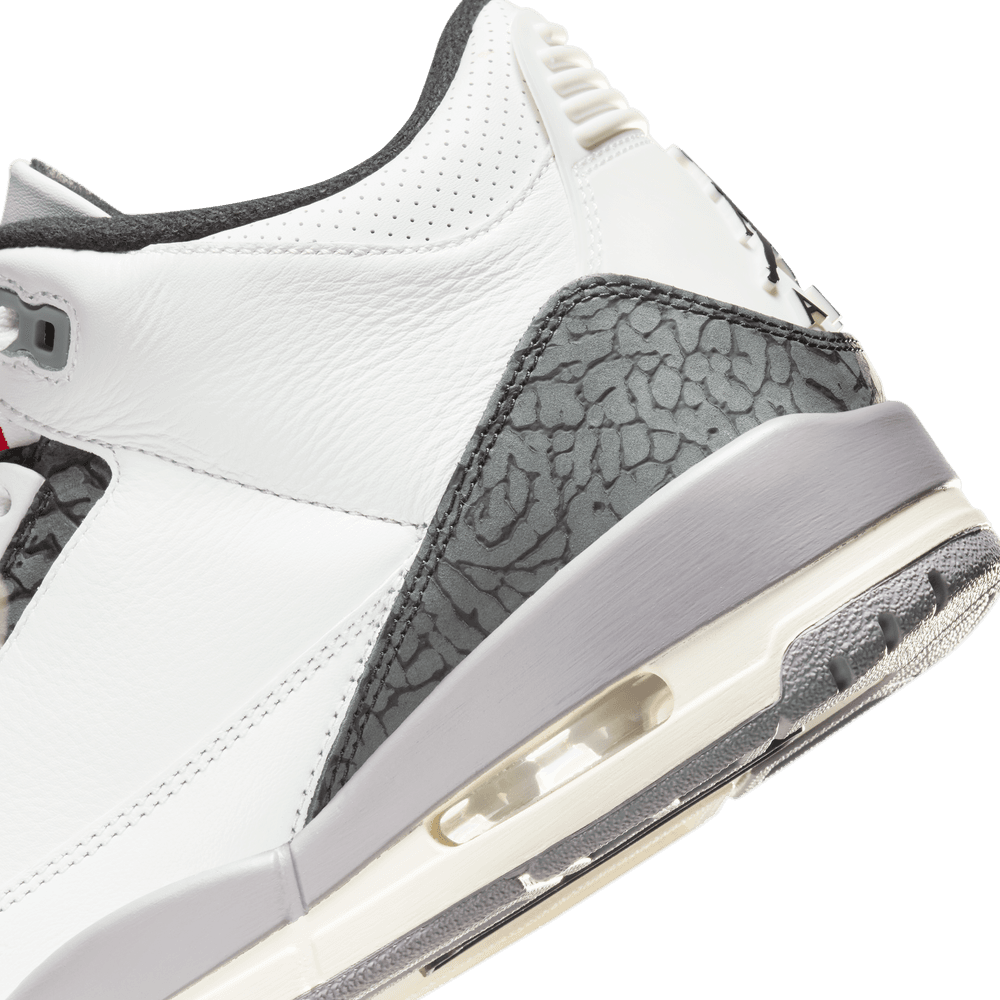 Air Jordan 3 Retro "Cement Grey" Men's Shoes Clean and supreme, the AJ3 returns with all of its classic style and grace. Quality leather in the upper—with that luxurious elephant print texture—combines with visible Nike Air in the sole to make a comfortable, everyday icon. Genuine and synthetic leathers offer a durable, supportive feel. Foam midsole with Air-Sole unit in the heel and forefoot for street-ready cushioning. Rubber outsole provides durability and traction.