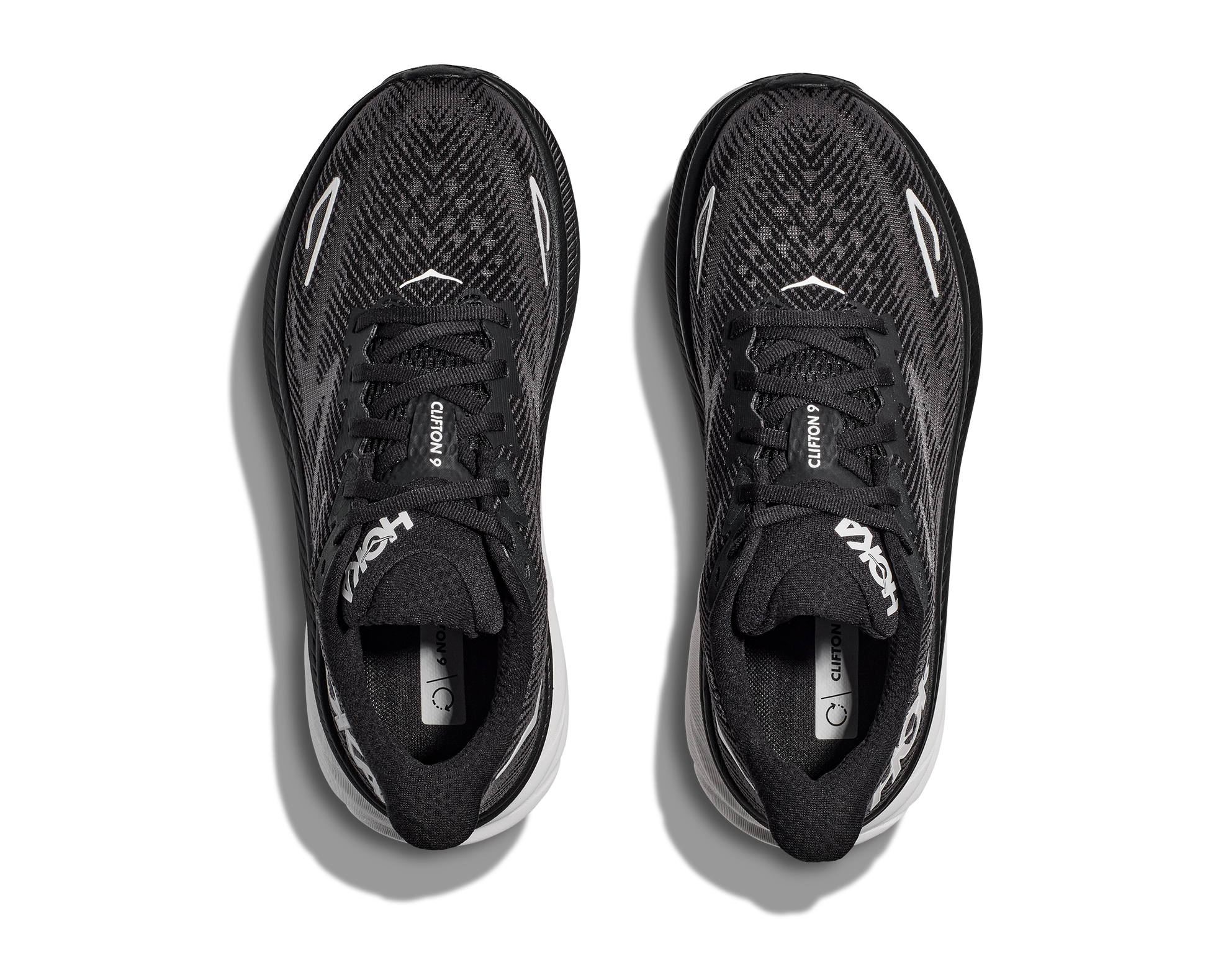 This pair of men's Hoka Clifton 9 running shoes provides superior cushioning and support. The Hoka Clifton 9 features a full-length foam midsole that absorbs the shock of each step, while the breathable engineered mesh upper provides an optimal fit. The combination of cushioning and support makes these shoes ideal for long-distance running.