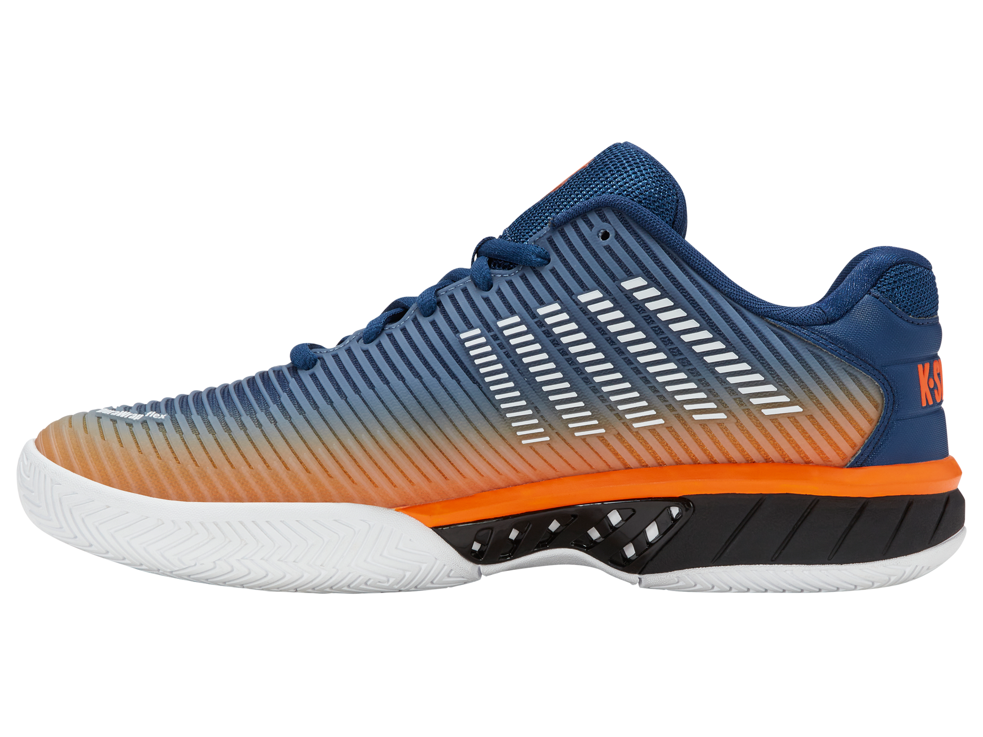 The Hypercourt Express 2 by K-Swiss, their top-selling model, offers a lightweight, breathable, and comfortably roomy design, suitable for multiple playing styles and skill levels. Featuring Durawrap Flex for immediate, reliable support and a Surgelite midsole that ensures prolonged comfort, this shoe delivers performance without compromise.