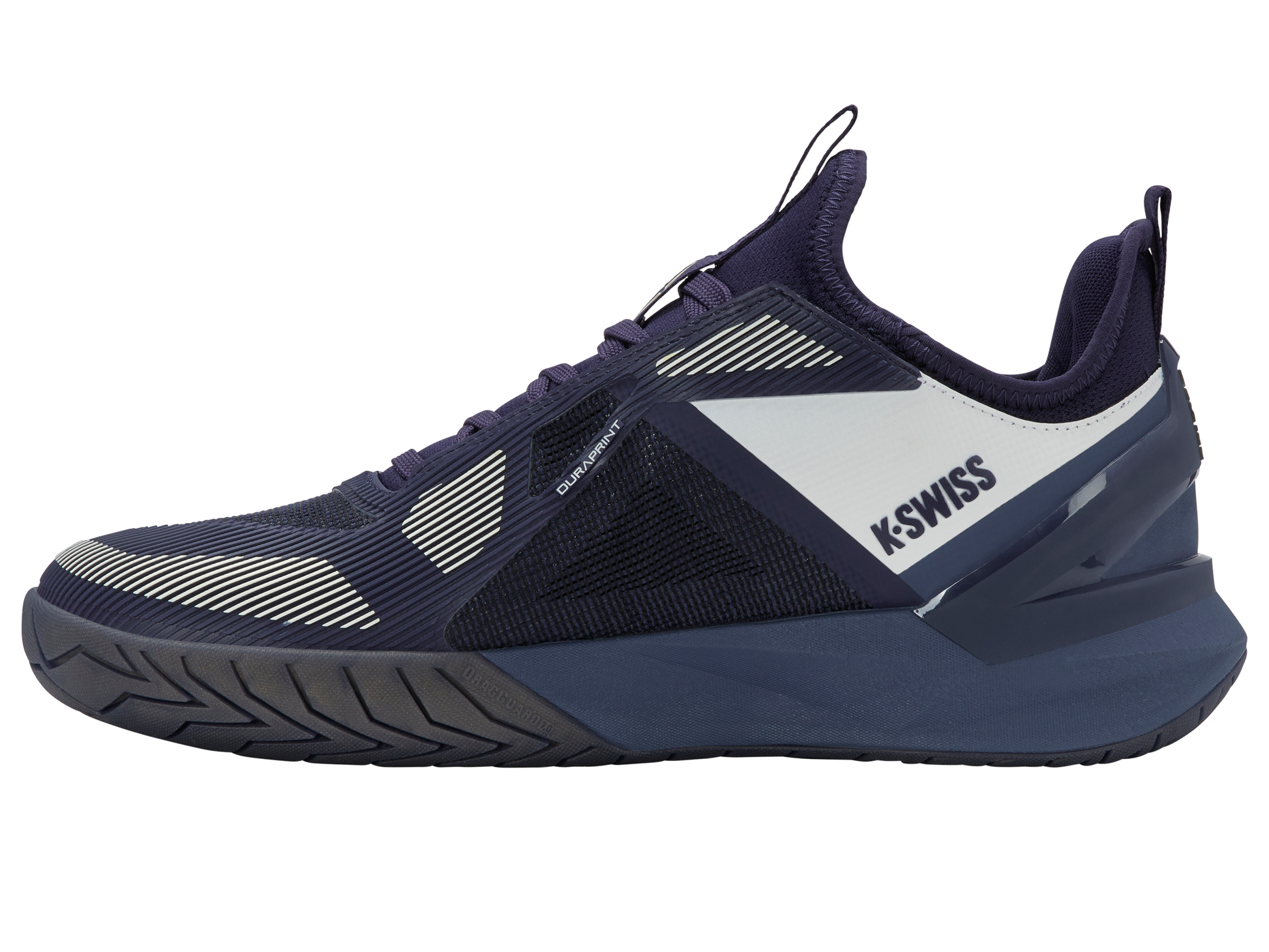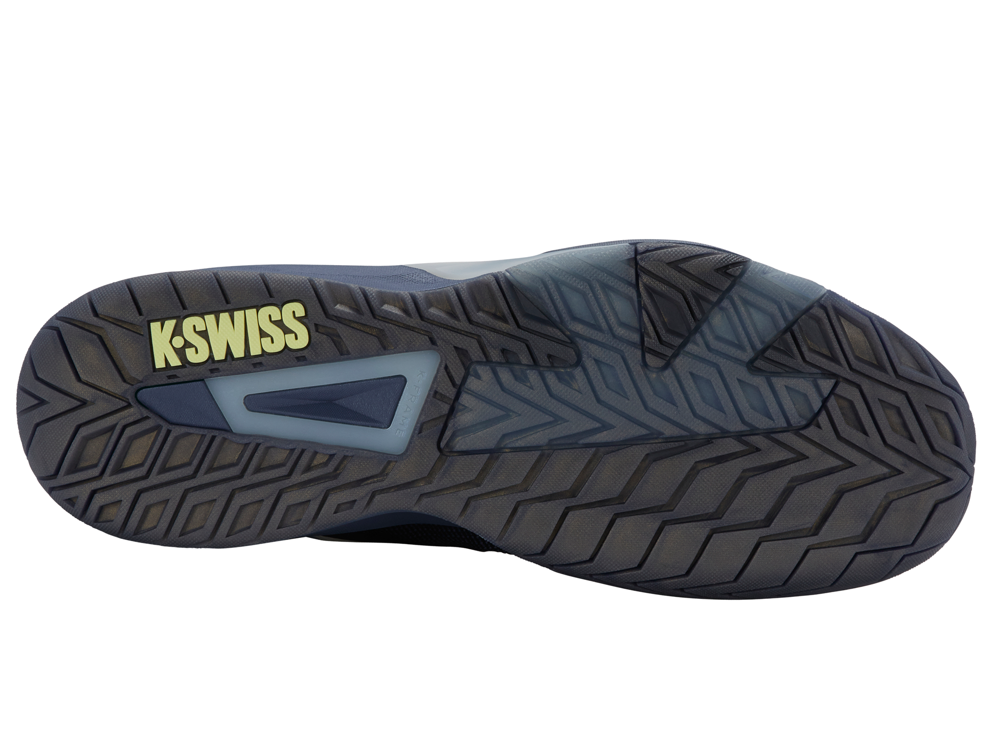 The KSWISS K-Frame Speed Rublo, co-designed with Andrey Rublev, features a TPU K-Frame for forefoot stability, Hyper Foam midsole for energy return, and a lightweight Duraprint upper for breathability and durability.