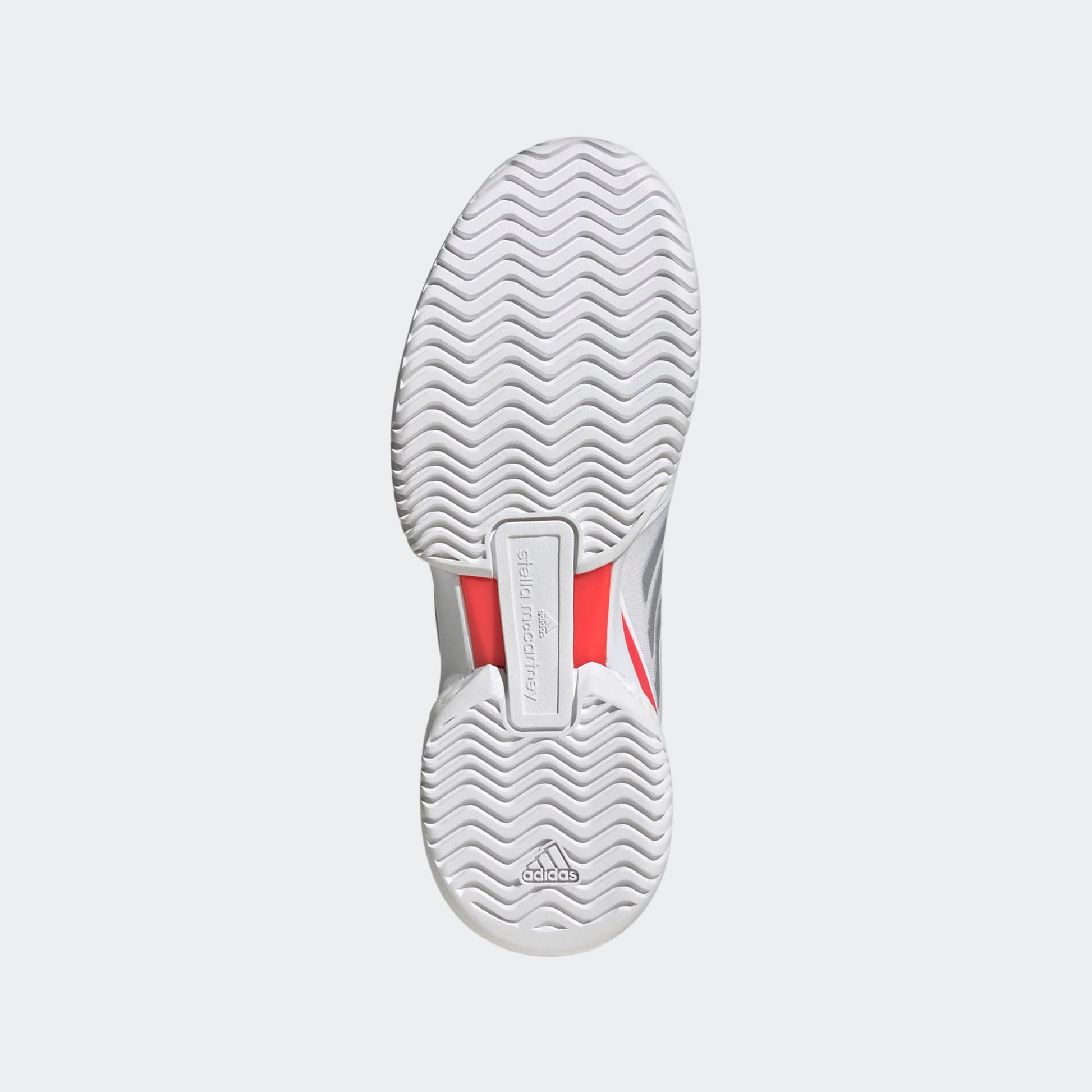 Elite performance meets on-court style. Flashing a bold Stella McCartney design, these adidas tennis shoes will keep you flying with an energy-returning BOOST midsole. On top, reflective details catch the eye while durable overlays work hard to defend the breathable mono mesh upper from foot-drag abrasion. Underneath, a grippy outsole keeps your reactions quick.