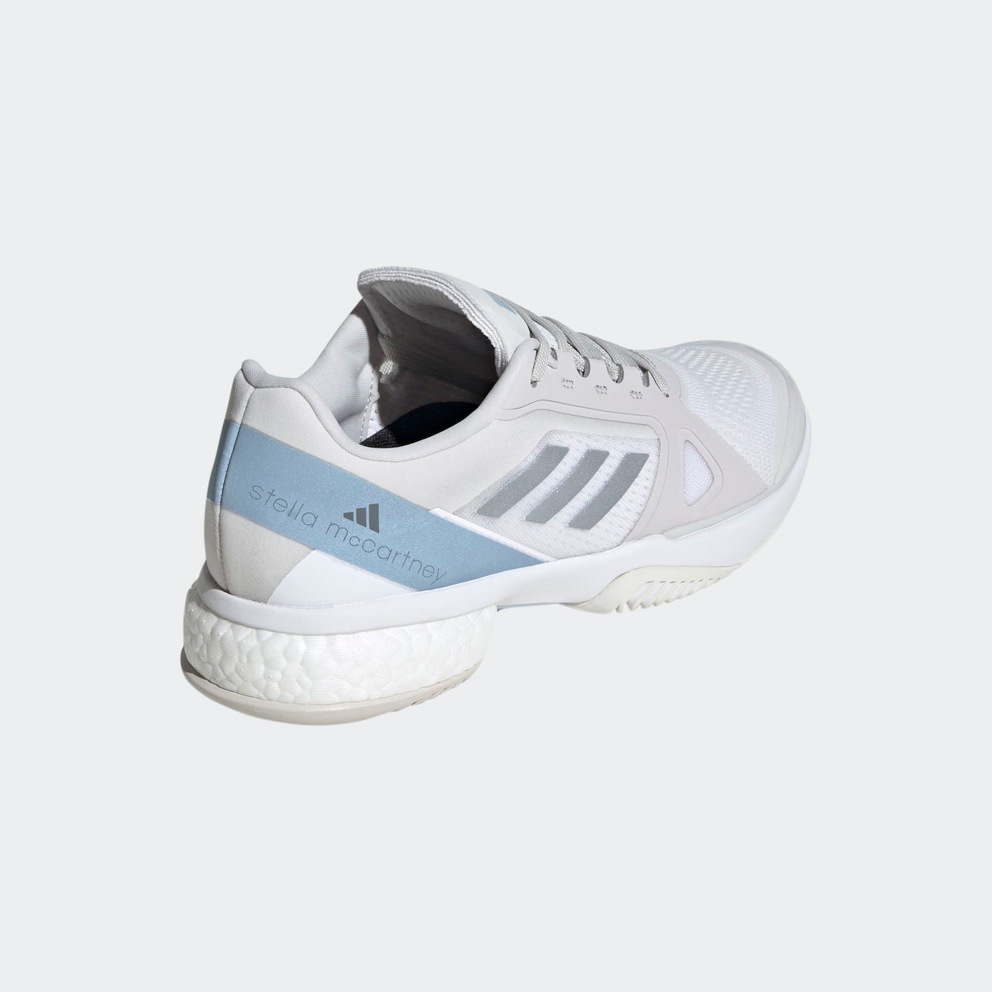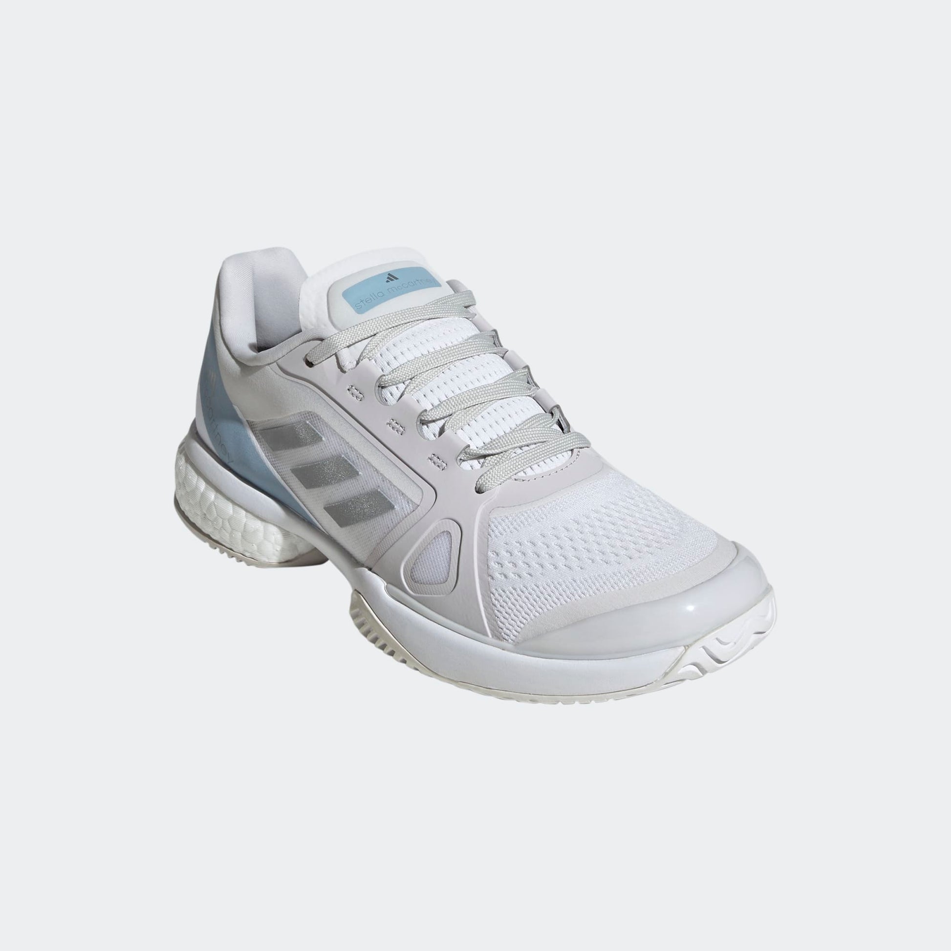 Elite performance meets on-court style. Flashing a bold Stella McCartney design, these adidas tennis shoes will keep you flying with an energy-returning BOOST midsole. On top, reflective details catch the eye while durable overlays work hard to defend the breathable mono mesh upper from foot-drag abrasion. Underneath, a grippy outsole keeps your reactions quick.