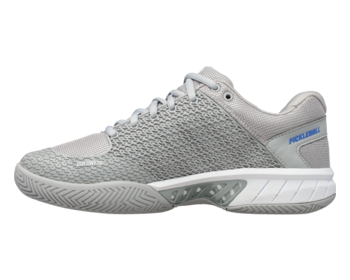 K-Swiss is the first brand to introduce a court shoe specifically designed for Pickleball, one of the fastest growing sports in the United States. The Express Light Pickleball was created to give players a comfortable, lightweight, breathable shoe that supports on-court movement and performance needed for the sport. It is an all-around shoe, perfect for the new or frequent player. Included on the shoe is a K-Swiss Pickleball logo and customized Pickleball sockliner. Ideal for hard court or clay court playing surfaces.