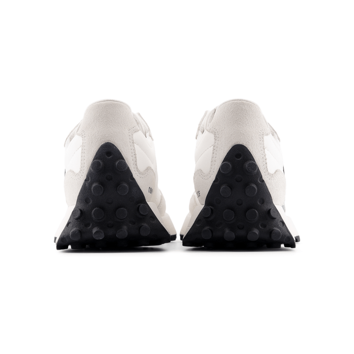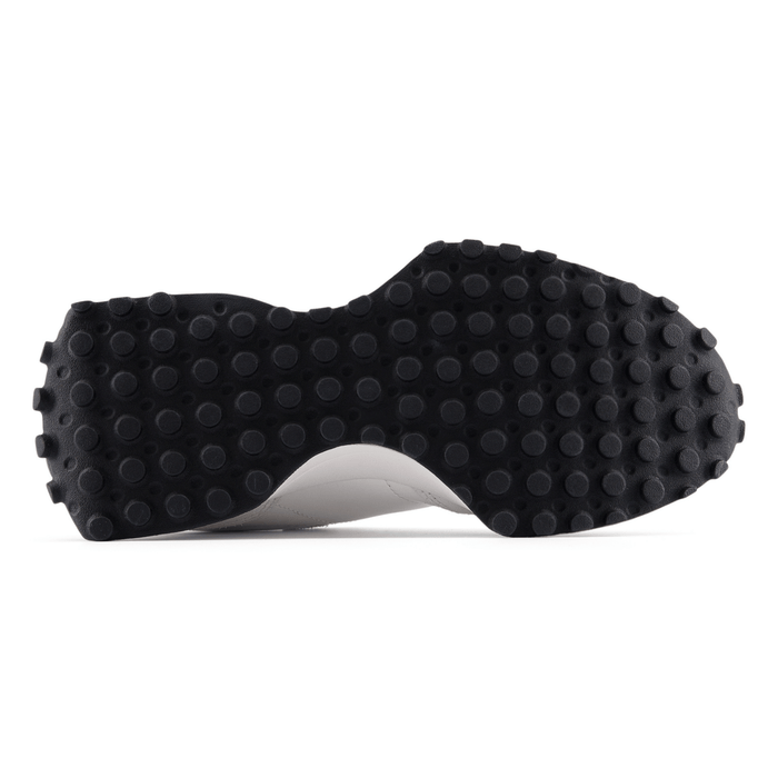 The Women's New Balance 327 reinterprets 1970s running shoe design with a modern twist. It features an angular wedge silhouette, oversized asymmetrical 'N' logo, and a trail-inspired lug outsole, blending classic heritage with contemporary innovation for performance and style.